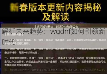 在当今这个信息爆炸的时代,新技术和新概念层出不穷,而"wgdnf"作为一个新兴的概念,正在引起越来越多的关注。它不仅仅是一个简单的缩写,更是一种全新的思维方式和行动指南。通过对"wgdnf"的深入分析,我们可以看到它在各个领域的广泛应用前景,以及它如何帮助我们更好地应对未来的挑战。 我们需要明确"wgdnf"的核心理念。这种理念强调的是在复杂环境中寻找突破口,通过创新和协作来实现目标。它不仅仅是一种理论,更是一种实践方法,能够帮助我们在快速变化的环境中保持竞争力。例如,在商业...